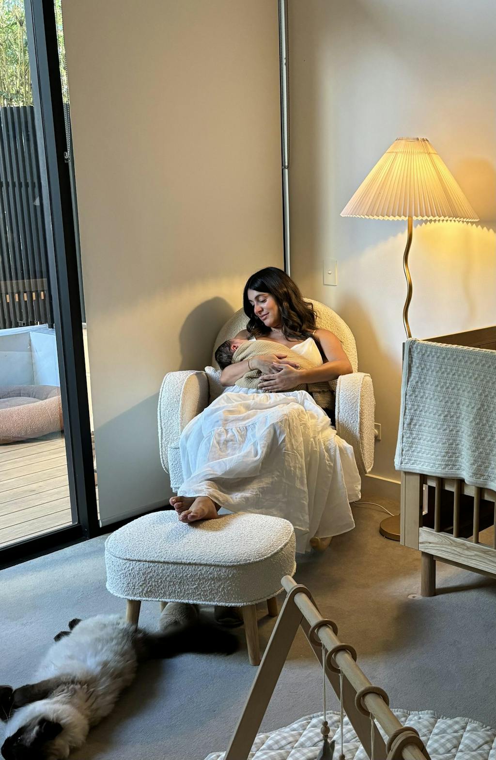 Although designed for nursing mums, the gorgeous rocking chair set can be used long after nursing.